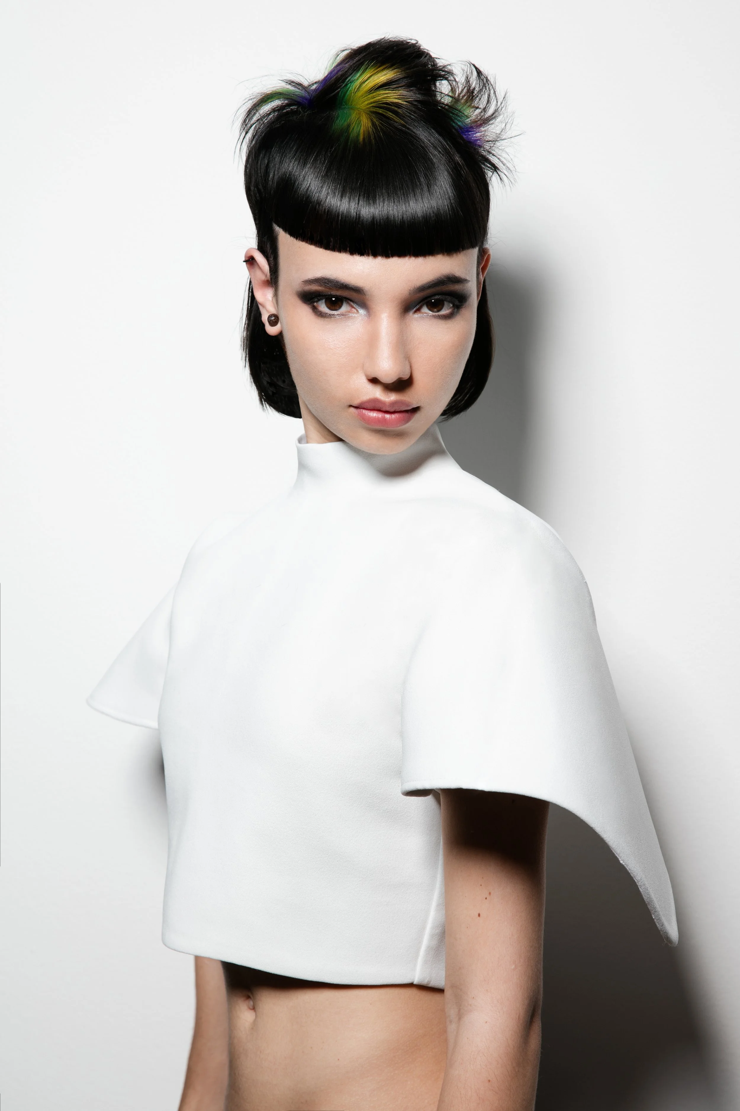 En résulte, des silhouettes géométriques très structurées et dominées par des lignes horizontales.